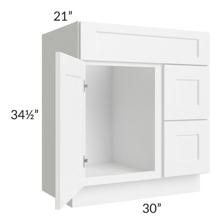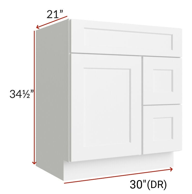 30" Bathroom Vanity, White Shaker Vanity, Double Door Cabinet