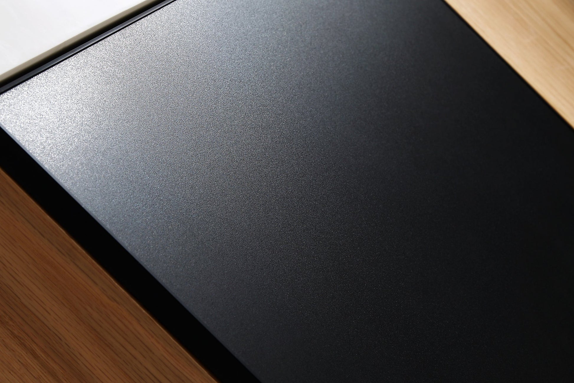 Front of Bathroom Cabinets: MATTE BLACK GLASS/MAPLE