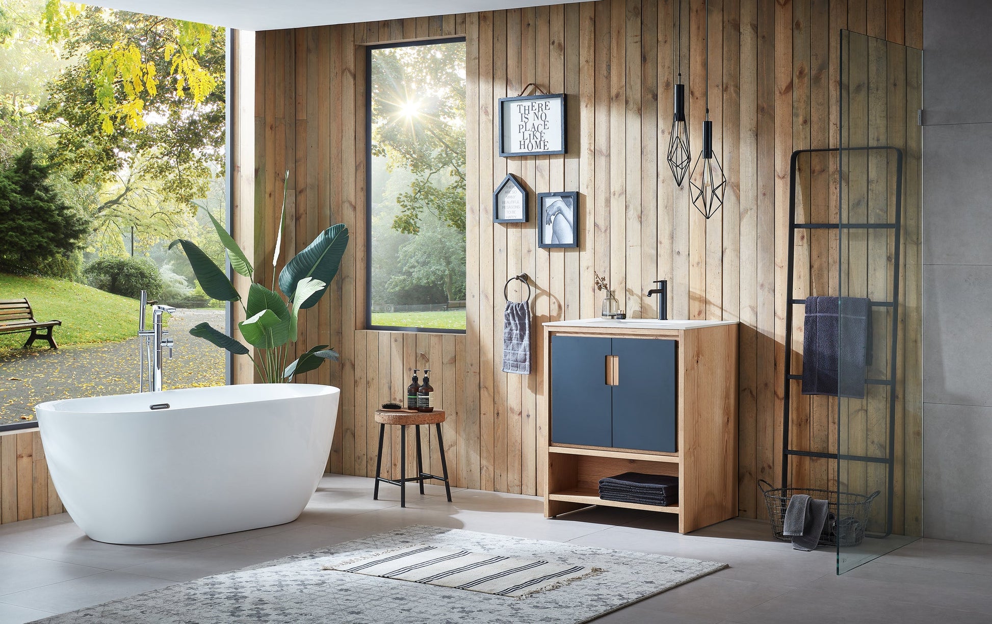 The newest entry in Cartisan’s catalog of vanities is our elegant and warm Lyon series. Available in 60”/30”, Black of Night/Maple and Beige/Walnut, Lyon is the perfect balance of rustic and contemporary. Its pleasant organic wood paneling is paired with Valspar-coated doors and a cool, sleek countertop. This premium white/black sintered stone counter features ceramic undermount sinks. Concave design, which shapes the unique handles and door edges, brings out stereoscopic appearance to the front. Double cabinet doors open to reveal multiple shelves, in addition to an open bottom shelf for storage. Black of Night and Beige are both in 2023-2024 best color collections for designers.