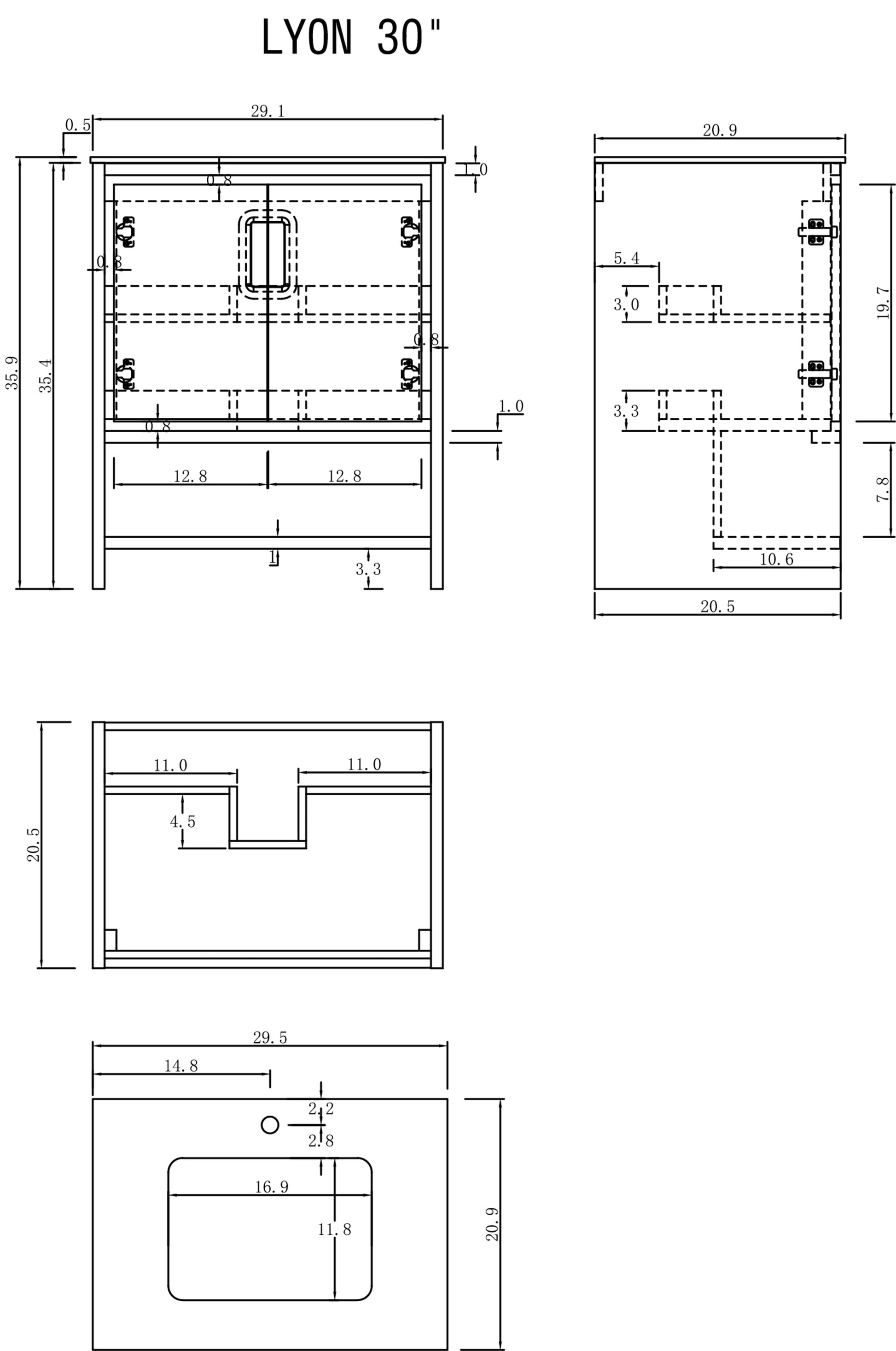 - Vanity Base Materials: 9 Layers of High Density Hardwood; 15mm of Thickness; Water-resistance; Splitting Resistance and More Stability & Strength.