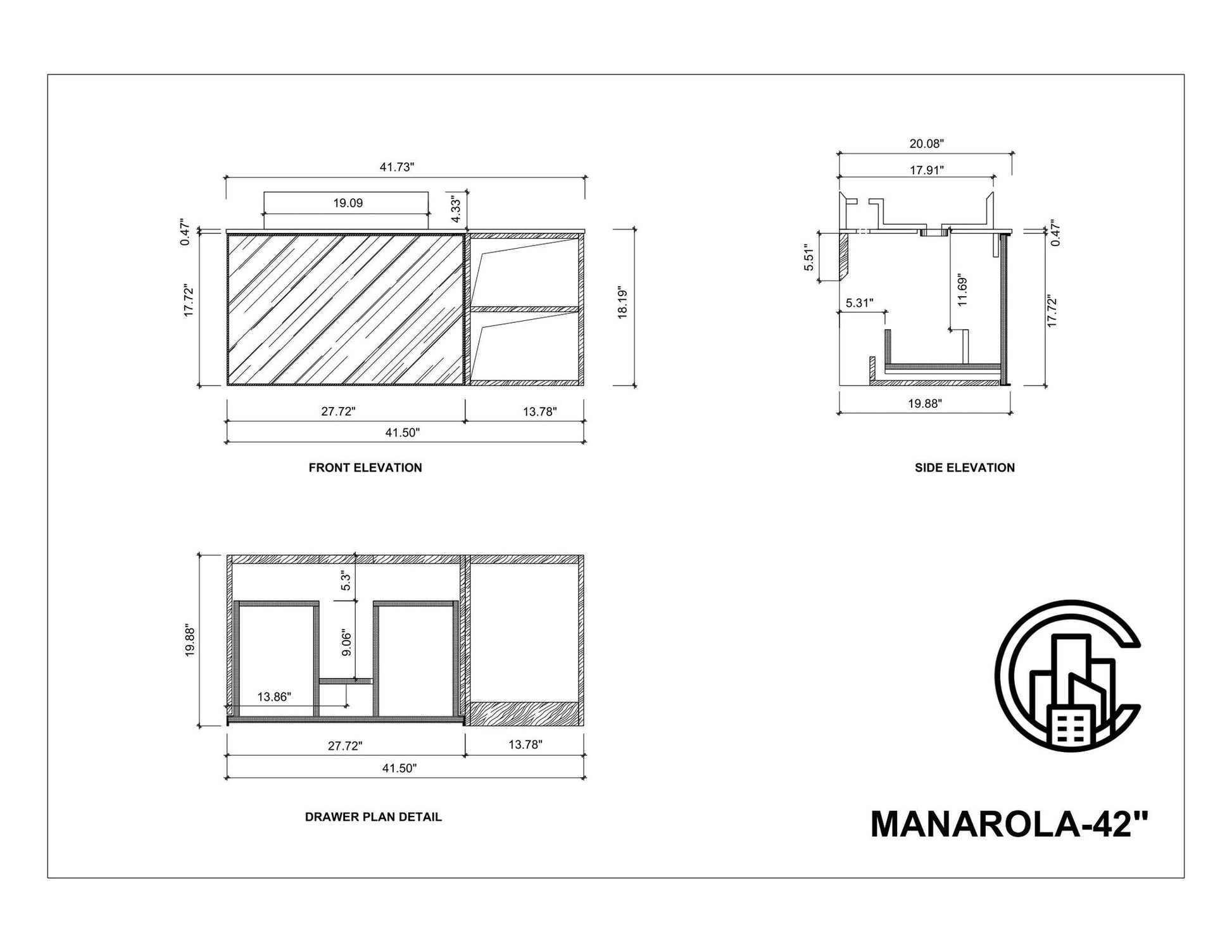 MANAROLA 42” LIGHT GRAY WALL MOUNT MODERN BATHROOM VANITY (OPEN SHELVES)