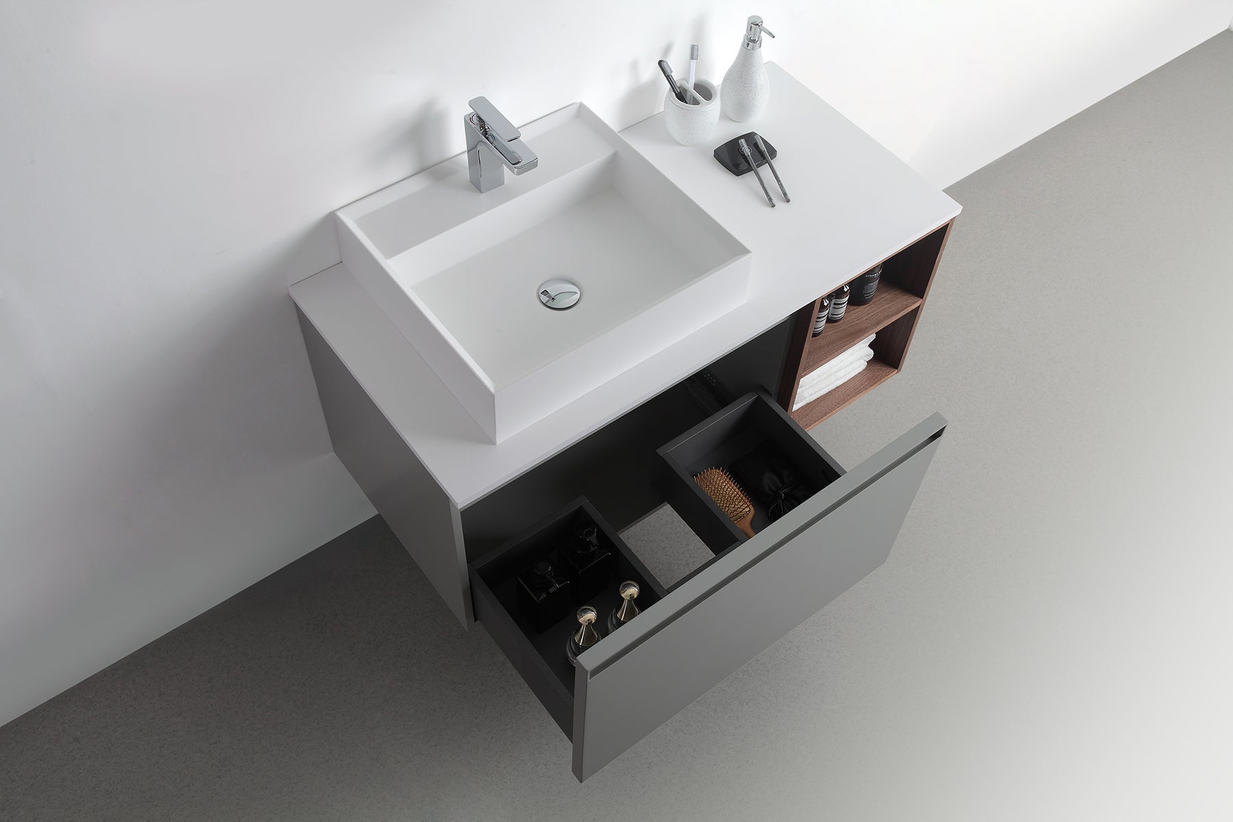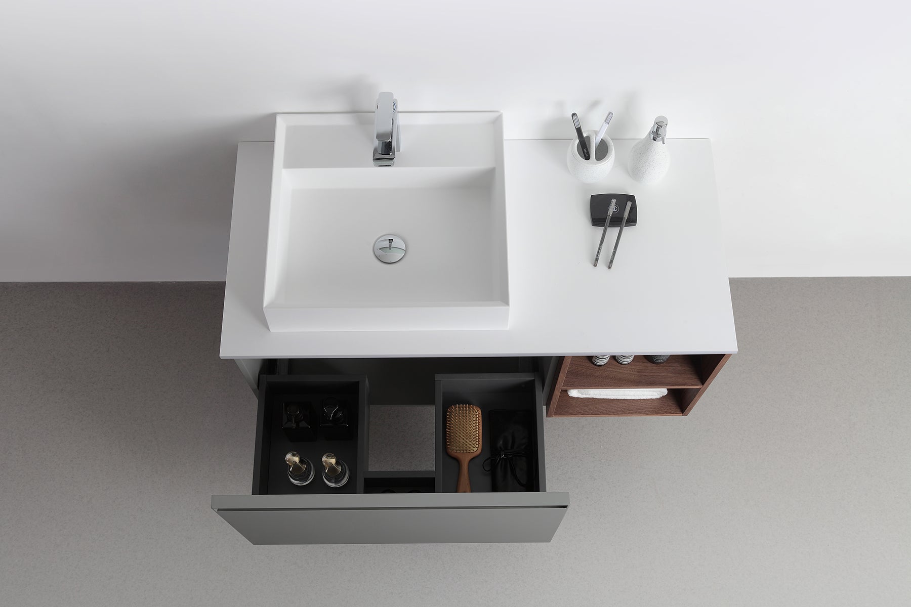 Vanity Base Color/Finish: LIGHT GRAY (OPEN SHELF: WALNUT)