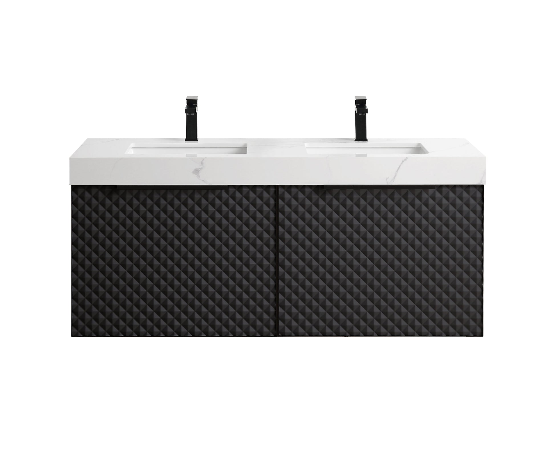 MANAROLA 48” BLACK OF NIGHT WITH THICK QUARTZ WALL MOUNT MODERN BATHROOM VANITY