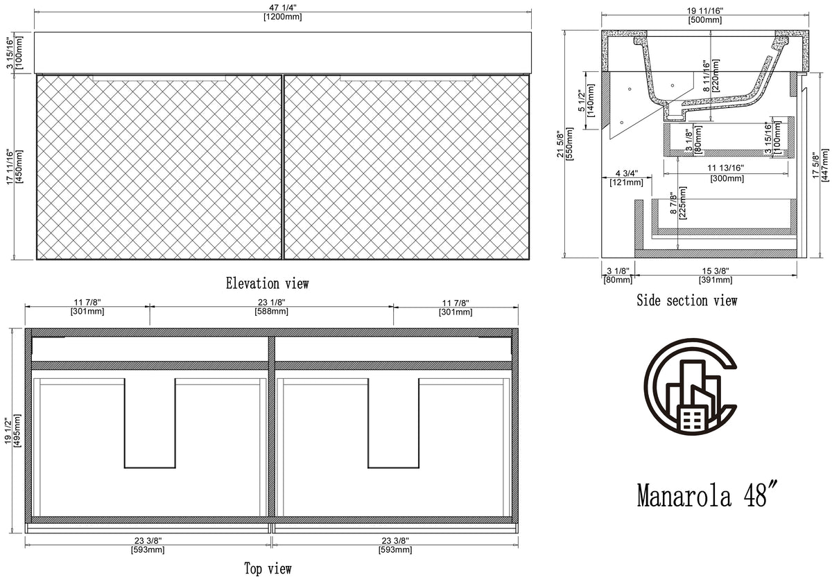 - Vanity Base Materials: 9 Layers of High Density Hardwood; 15mm of Thickness; Water-resistance; Splitting Resistance and More Stability & Strength.