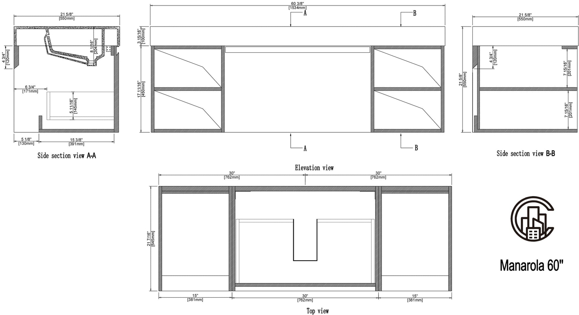 - Vanity Base Materials: 9 Layers of High Density Hardwood; 15mm of Thickness; Water-resistance; Splitting Resistance and More Stability & Strength.