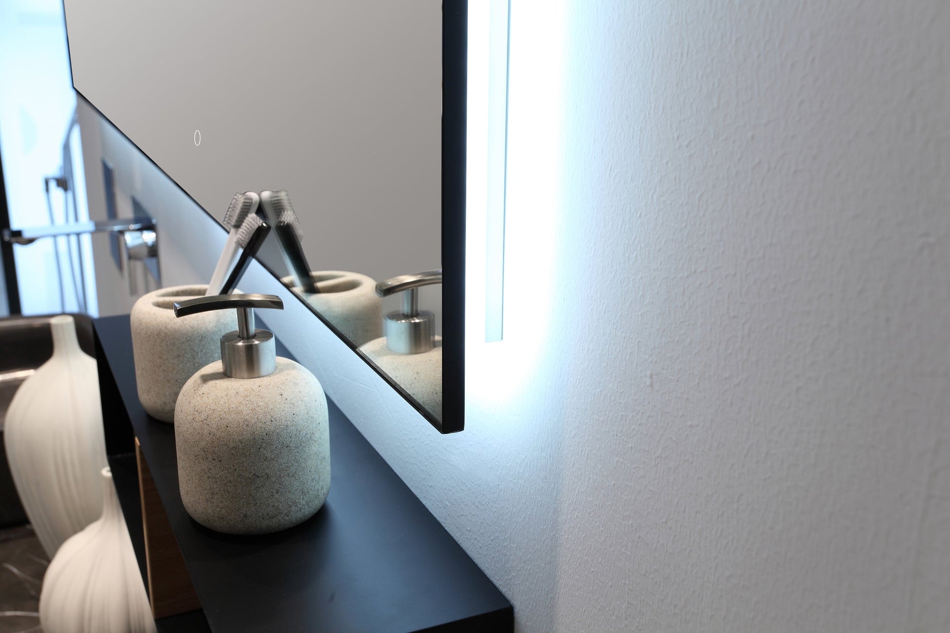 - Premium metal frame in smooth finishing color; Frame with LED Lighting is behind the glass.