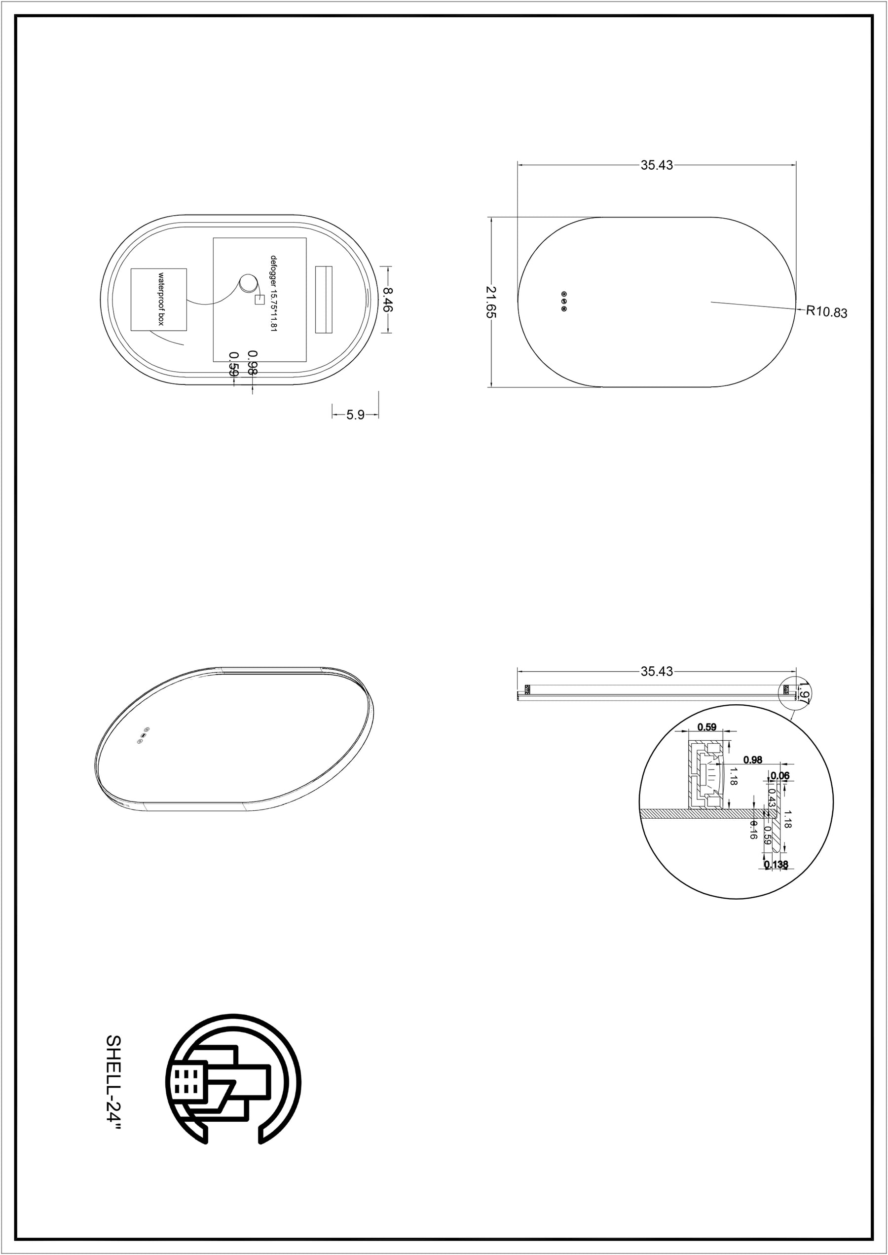 Dimension: 35.43"(Width) x 21.65" (Height) x 1.97" (Depth)