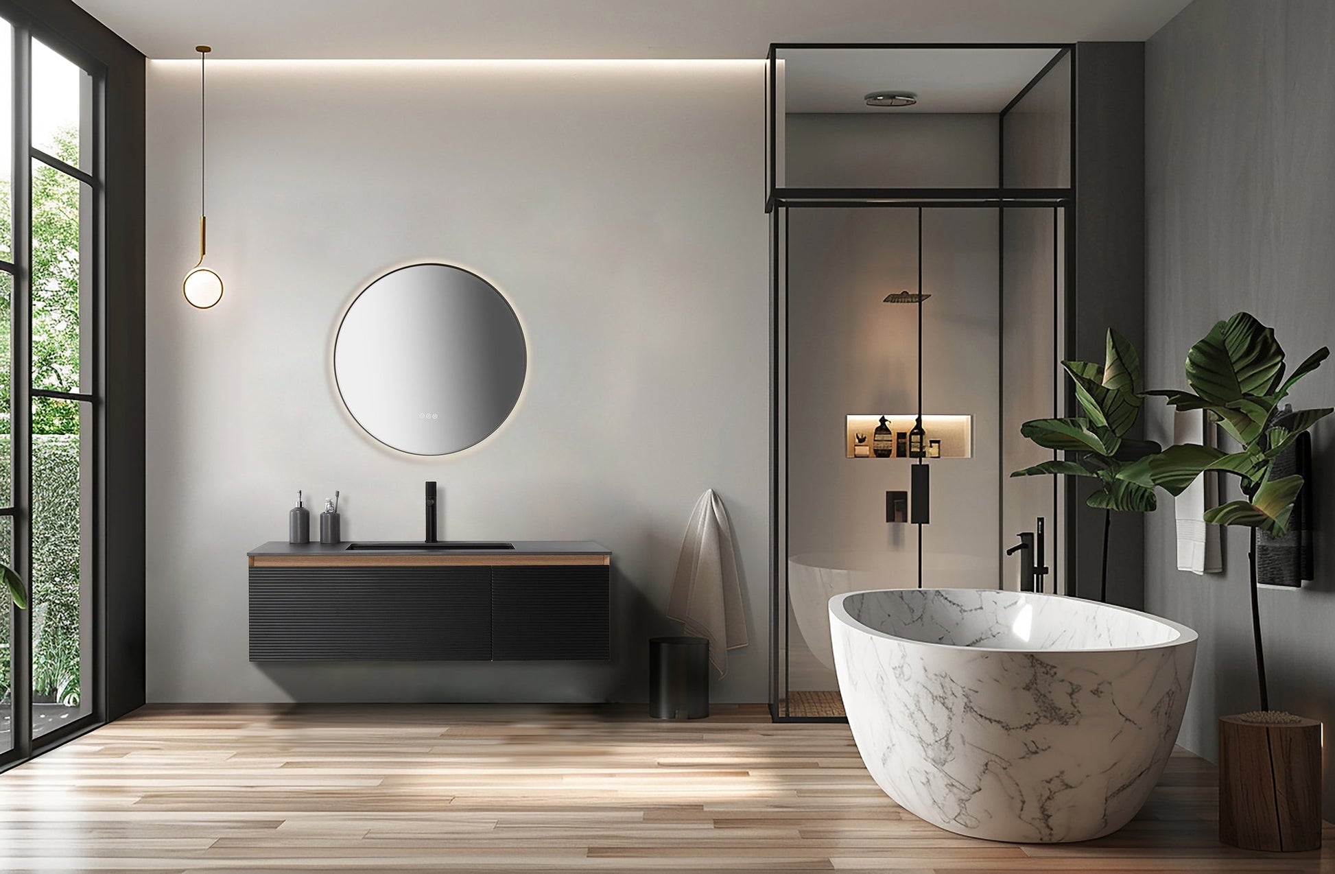 The Shell wall-mounted mirror series is a classic and elegant style suitable for a variety of home spaces. This collection is available in three sizes: 24-inch, 30-inch, and 36-inch, along with three color options: Dark Gold, Matte Black, and Matte White. The ideal oval or round shape is a favorite choice among home designers and decorators, offering a luxurious touch to enhance your bathroom.