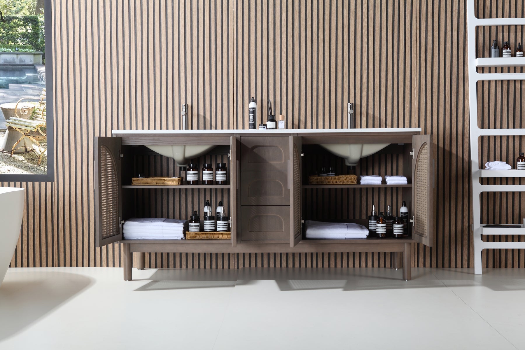 NARA 72” CHESTNUT OAK MID-CENTURY FREESTANDING BATHROOM VANITY