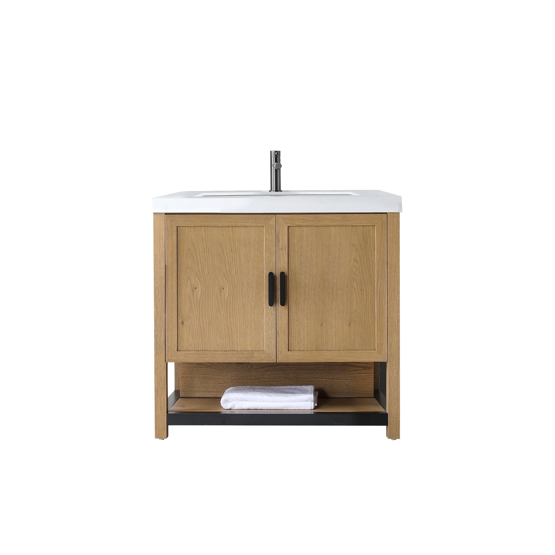 WINCHESTER 36” PECAN OAK FREESTANDING MODERN BATHROOM VANITY (WHITE COUNTERTOP)